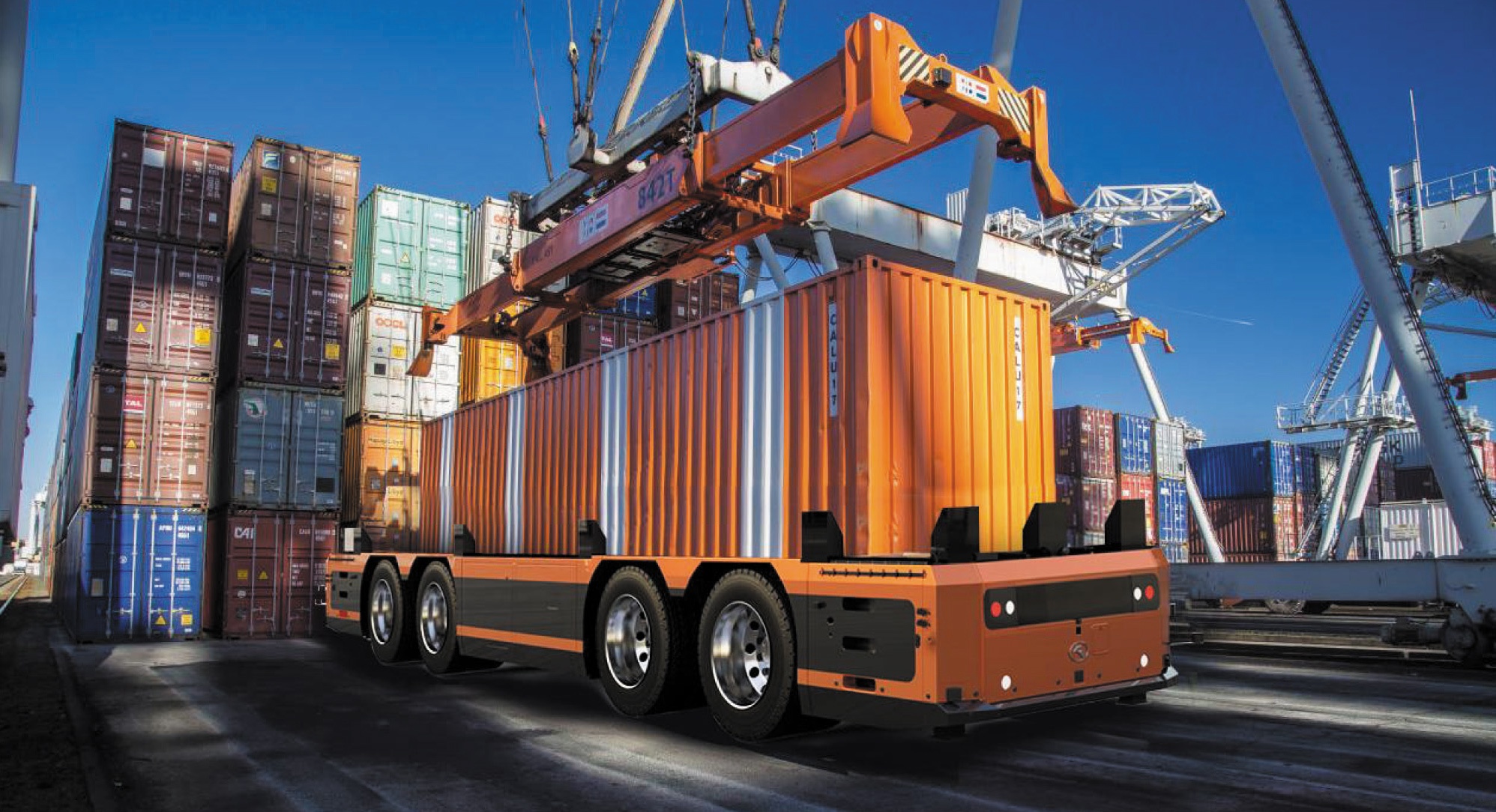 金龍IGV-智能導(dǎo)引港口運(yùn)輸車(chē)搭載港口無(wú)人駕駛系統(tǒng)解決方案,集線控底盤(pán)、自動(dòng)駕駛、遠(yuǎn)程駕駛、車(chē)路協(xié)同及車(chē)隊(duì)運(yùn)營(yíng)系統(tǒng)于一體,可全天候、全天時(shí)實(shí)現(xiàn)直線行駛、自動(dòng)變道、主動(dòng)避障、自動(dòng)泊車(chē)等自動(dòng)駕駛功能,以及場(chǎng)/岸橋自動(dòng)精準(zhǔn)對(duì)位,任務(wù)調(diào)度等自動(dòng)作業(yè),助力港口數(shù)字化轉(zhuǎn)型升級(jí)!