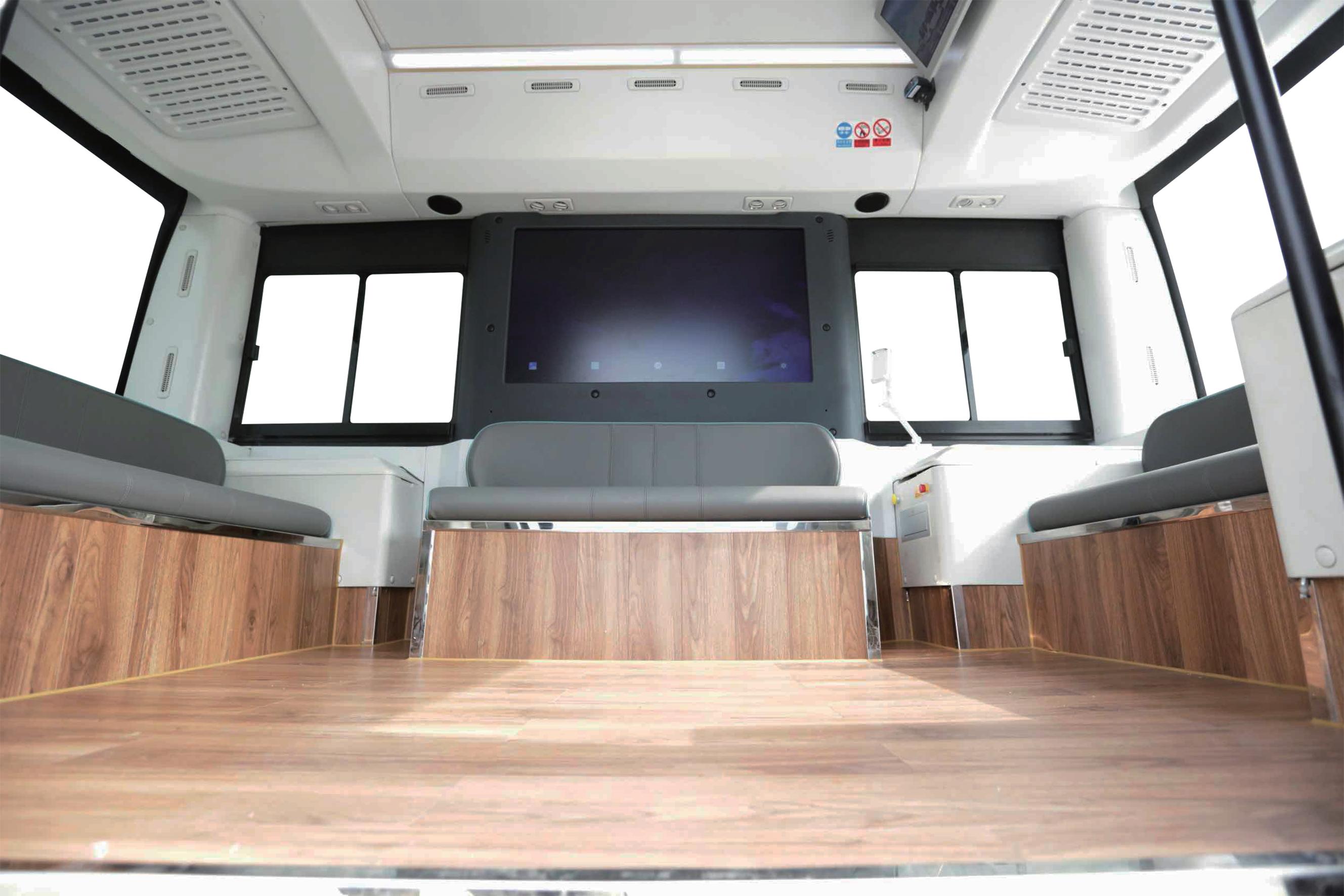 金龍HAPO擁有簡約輕奢內(nèi)飾,合理化布局,營造8座6站寬敞車內(nèi)空間,電視、全景攝像頭、HMI交互大屏、USB口等配備,令出行更舒適安全。