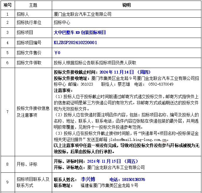 大中巴整車KD包裝項(xiàng)目公開招標(biāo)公告